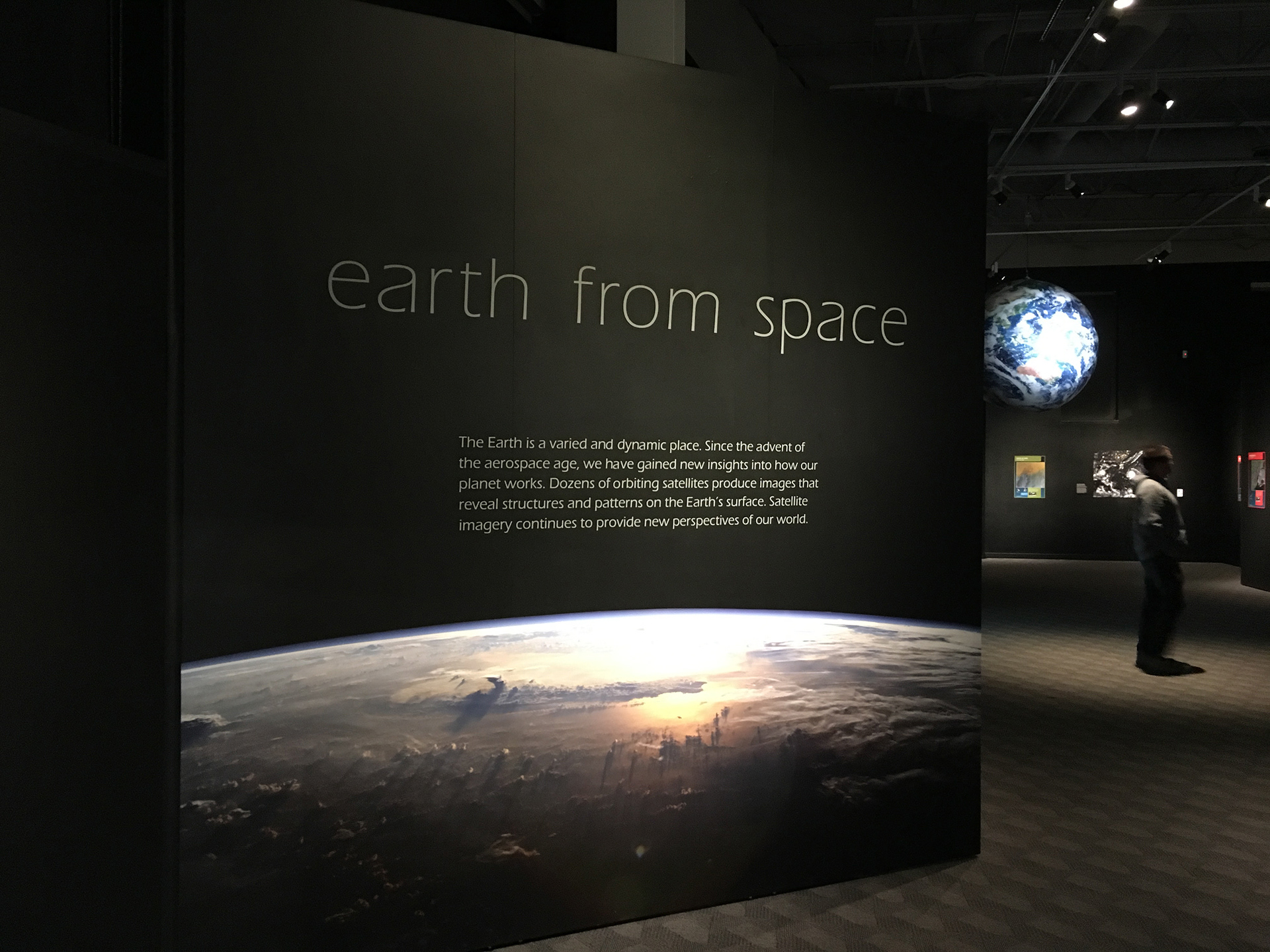 Design Notes: This exhibition was produced and traveled by the Smithsonian Institution, and so the majority of graphic panels came ready for print and installation; all the design work needed was the title wall for the exhibition and promotional materials for the marketing campaign. I wanted to create a feeling of floating in the open, to convey the sense of awe many astronauts speak of having seen the view of our planet from above.
