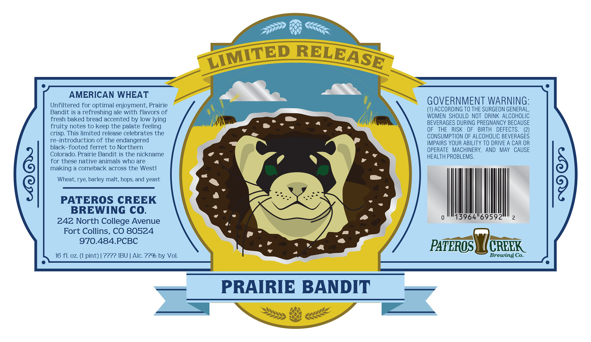 Beer label and t-shirt designs for Prairie Bandit, a limited release American Wheat